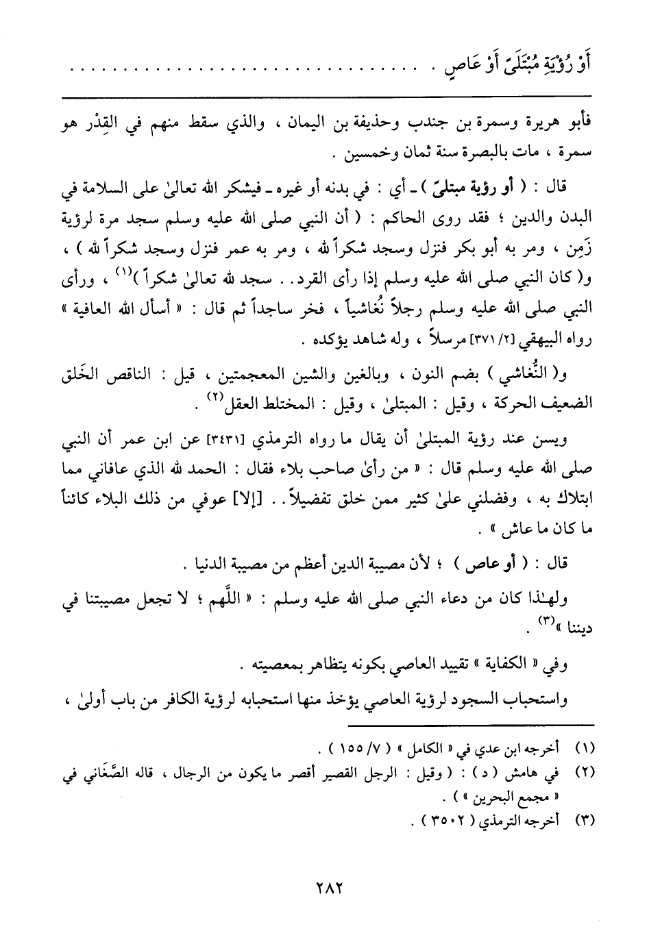 أَوْ رُؤْيَةِ مُبْتَلَىً أَوْ عَاصٍ