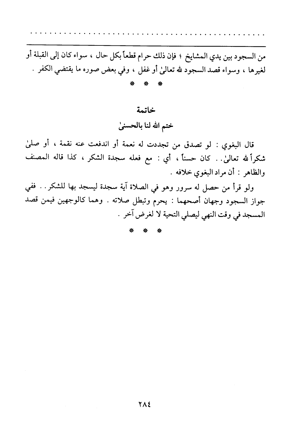 قال البغوي: لو تصدق من تجددت له نعمة أو اندفعت عنه نقمة، أو صلى شكرًا لله تعالى .. كان حسنًا، أي: مع فعله سجدة الشكر، كذا قاله المصنف والظاهر: أن مراد البغوي خلافه.