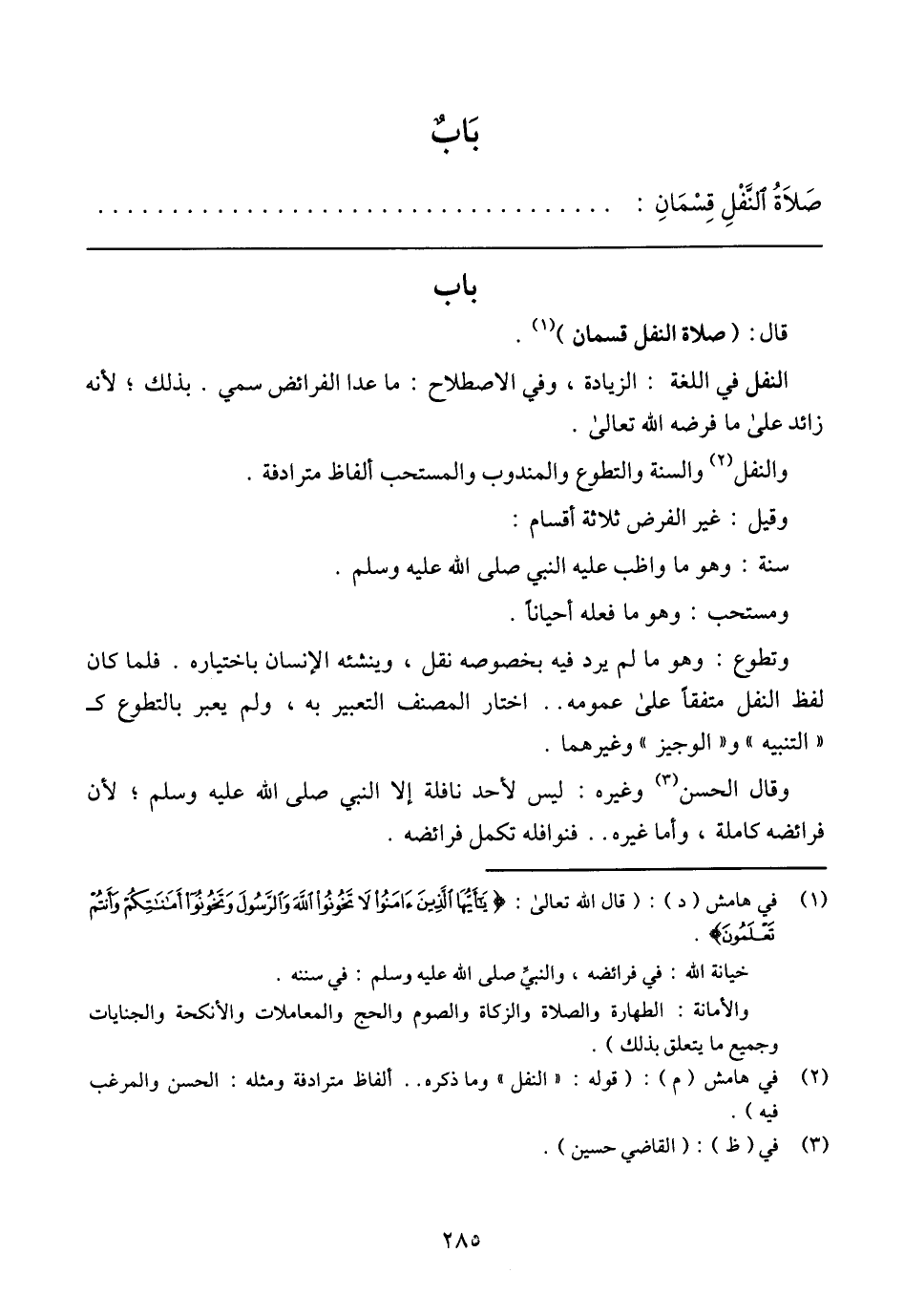 صَلاَةُ النَّفْلِ قِسْمَانِ: