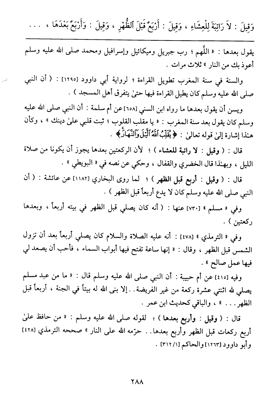 قال: (وقيل: وأربع بعدها)؛ لقوله صلى الله عليه وسلم: (من حافظ على أربع ركعات قبل الظهر وأربع بعدها .. حرمه الله على النار) صححه الترمذي [428] وأبو داوود [1263] والحاكم [1/ 312].