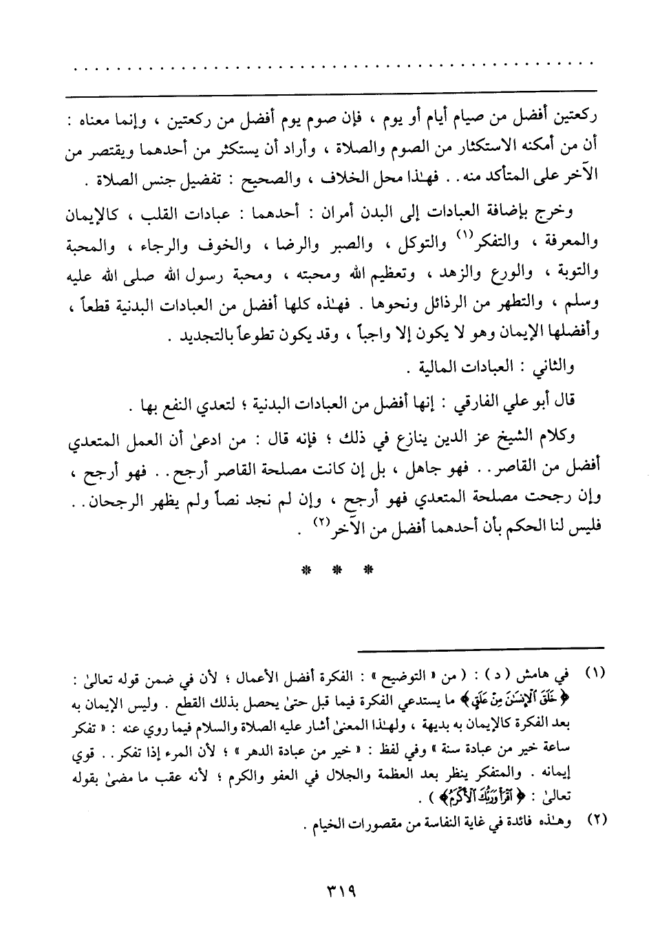 قال أبو علي الفارقي: إنها أفضل من العبادات البدنية؛ لتعدي النفع بها.