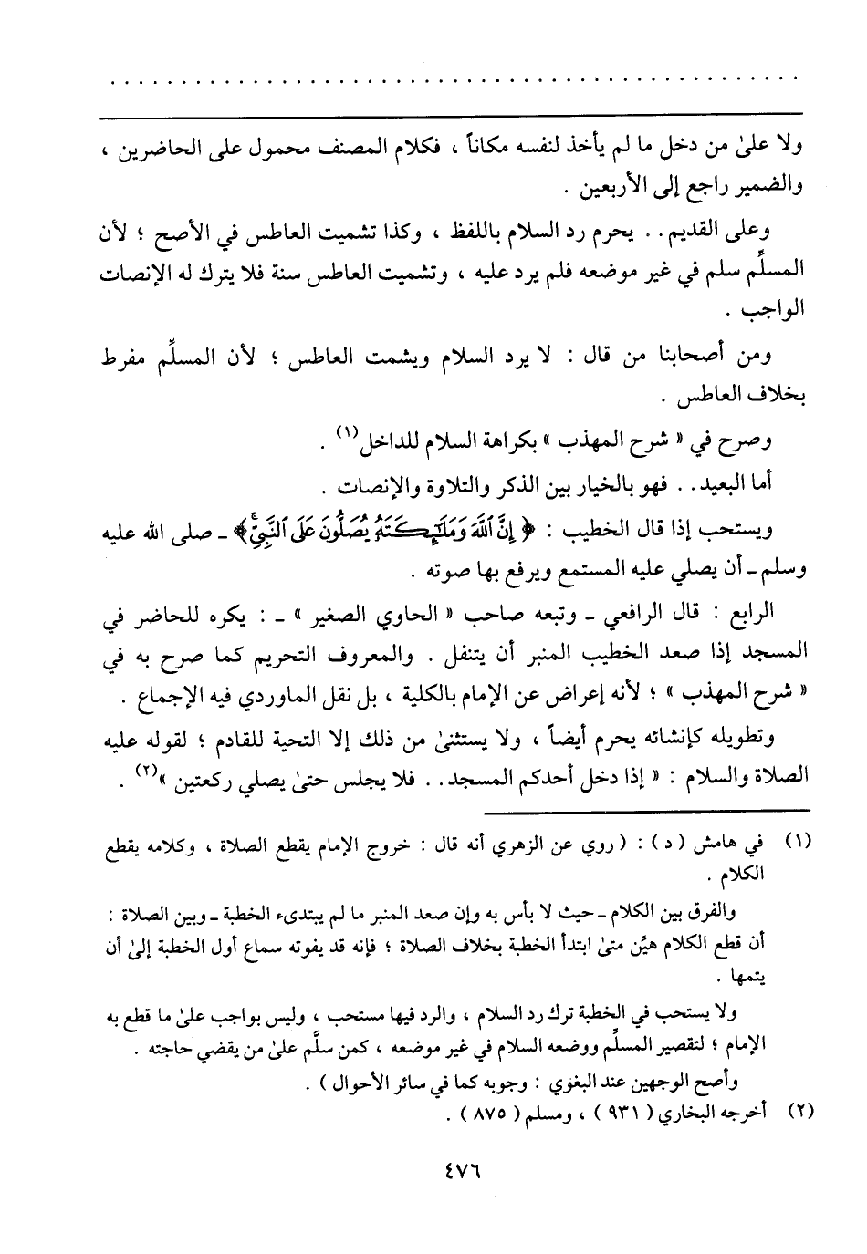 وعلى القديم .. يحرم رد السلام باللفظ، وكذا تشميت العاطس في الأصح؛ لأن المسلم سلم في غير موضعه فلم يرد عليه، وتشميت العاطس سنة فلا يترك له الإنصات الواجب.