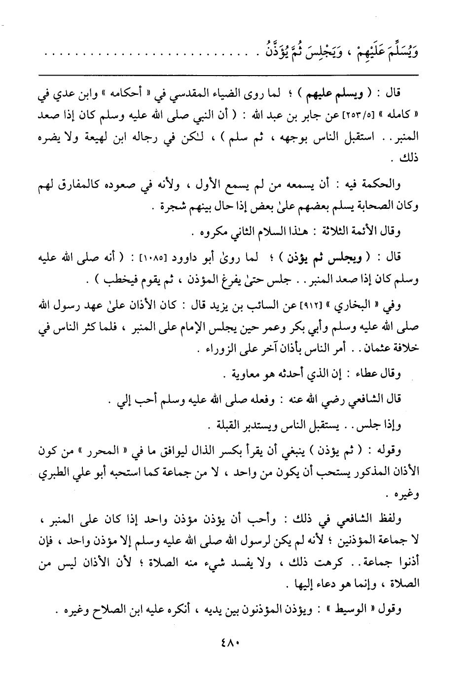 وَيُسَلَّمَ عَلَيْهِمْ، وَيَجْلِسَ ثُمَّ يُؤَذَّنُ