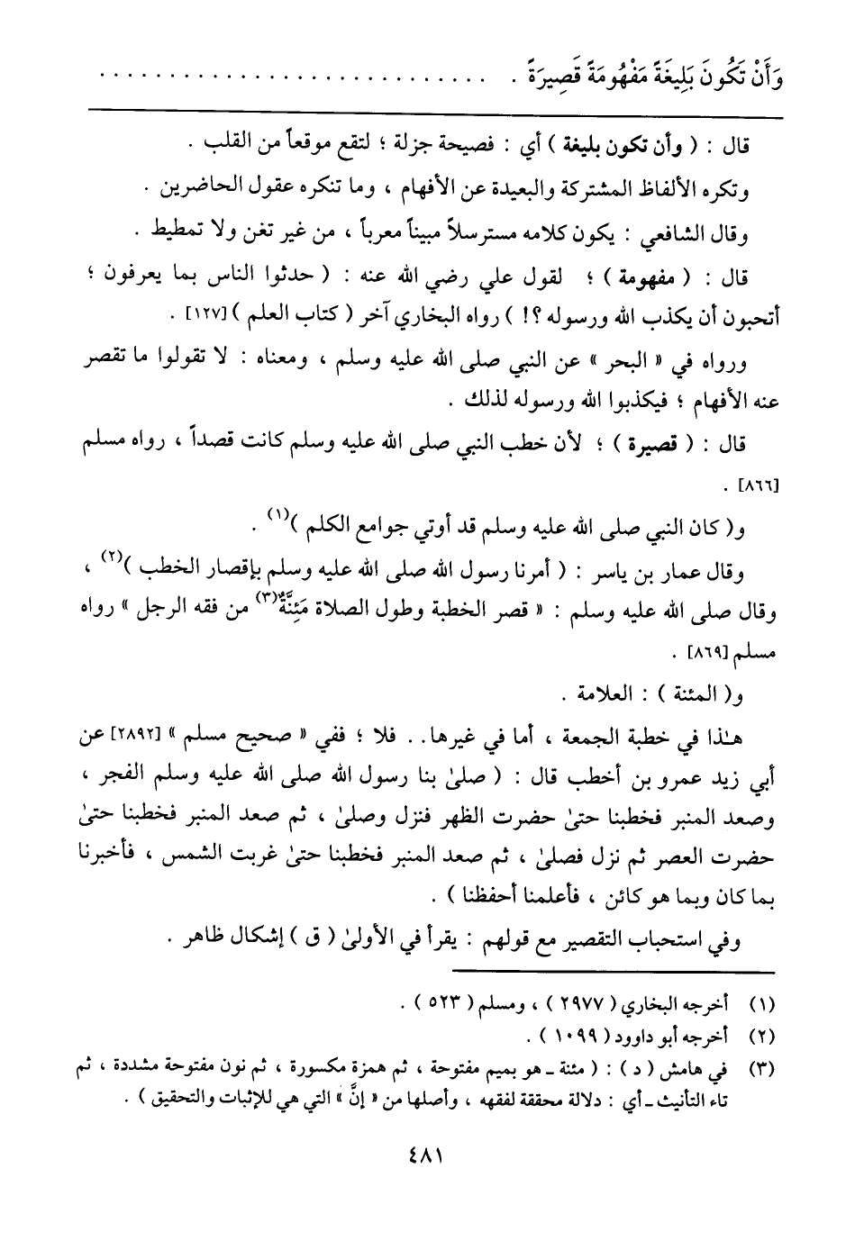 وَأَنْ تَكُونَ بَلِيغَةً مَفْهُومَةٌ قَصِيرَةً