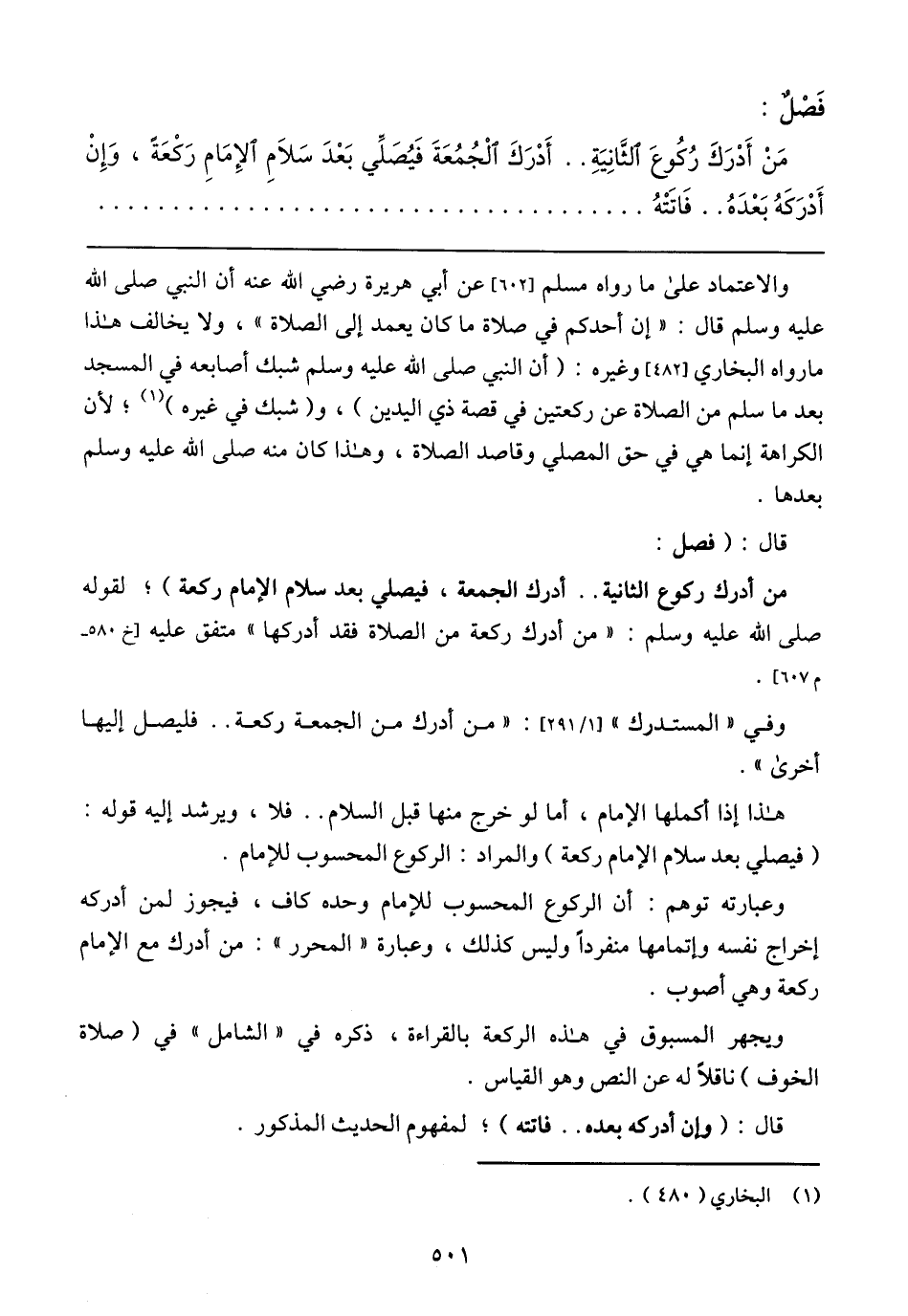 وعبارته توهم: أن الركوع المحسوب للإمام وحده كاف، فيجوز لمن أدركه إخراج نفسه وإتمامها منفردا وليس كذلك، وعبارة (المحرر): من أدرك مع الإمام ركعة وهي أصوب.