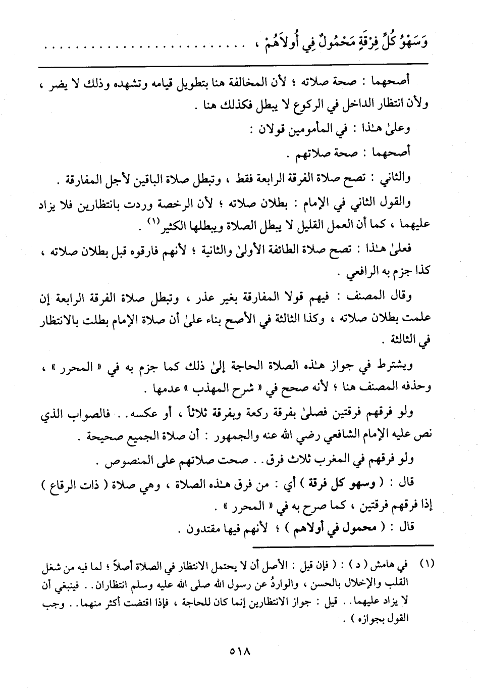 قال: (وسهو كل فرقة) أي: من فرق هذه الصلاة، وهي صلاة (ذات الرقاع) إذا فرقهم فرقتين، كما صرح به في (المحرر).
