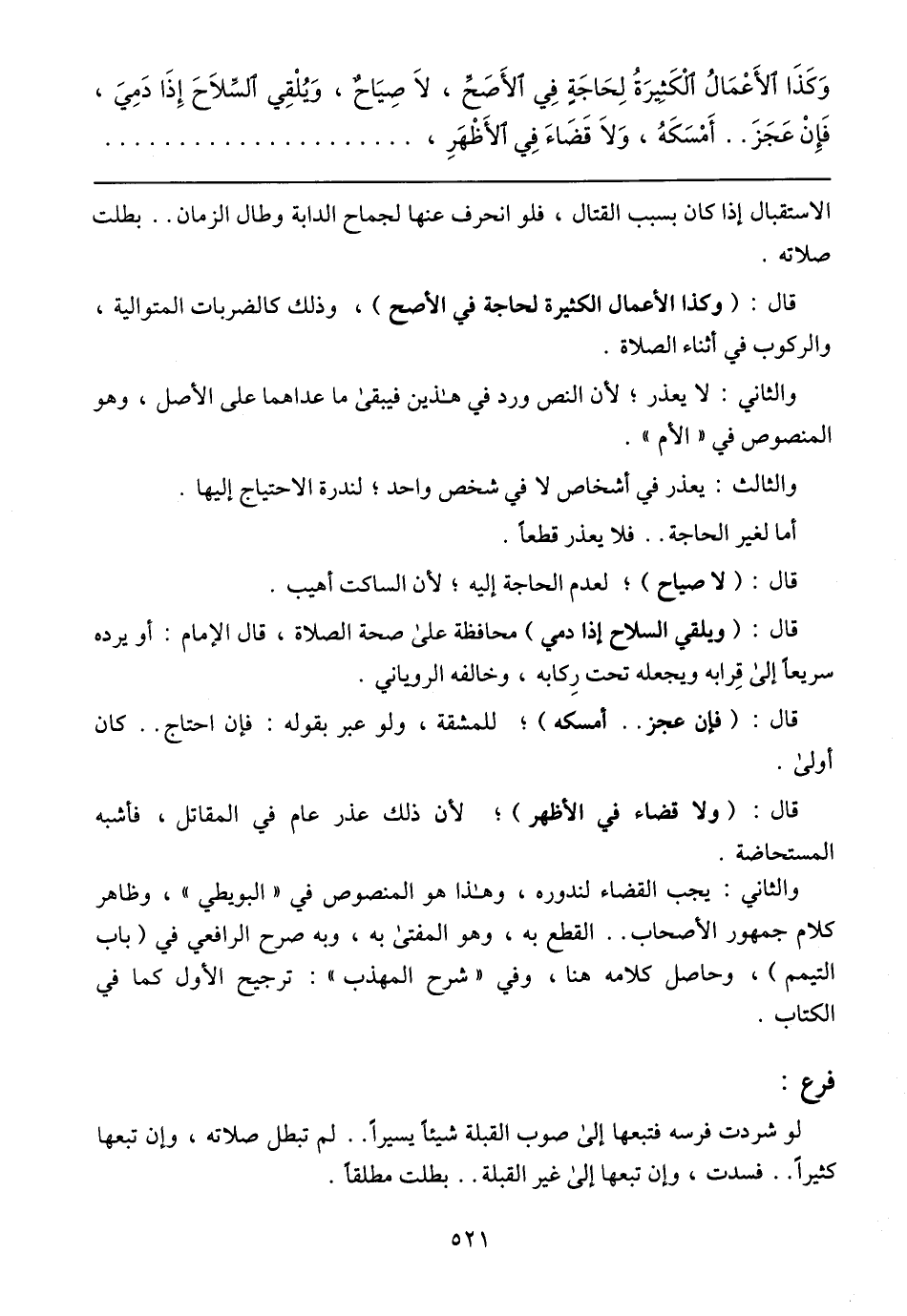 لو شردت فرسه فتبعها إلى صوب القبلة شيئا يسيرا .. لم تبطل صلاته، وإن تبعها كثيرا .. فسدت، وإن تبعها إلى غير القبلة .. بطلت مطلقا.