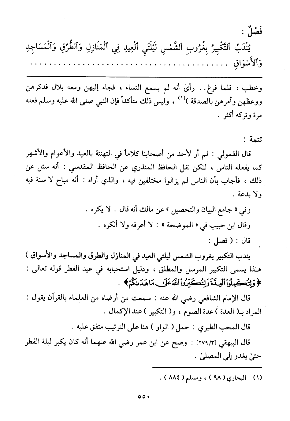 قال البيهقي] 3/ 279 [: وصح عن ابن عمر رضي الله عنهما أنه كان يكبر ليلة الفطر حتى يغدو إلى المصلى.