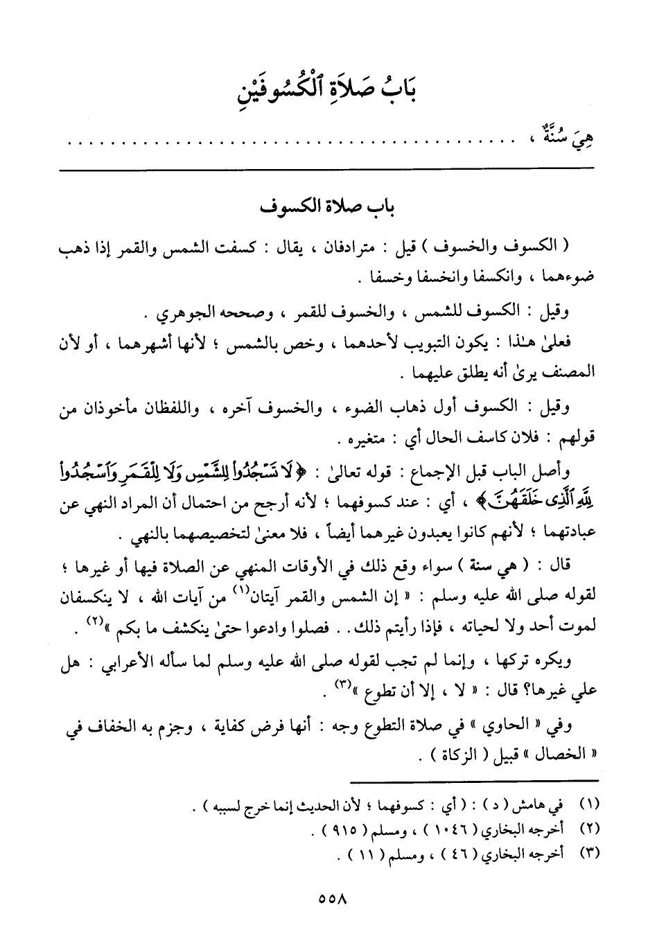 وأصل الباب قبل الإجماع: قوله تعالى:} لا تسجدوا للشمس ولا للقمر واسجدوا لله الذي خلقهن {، أي: عند كسوفهما؛ لأنه أرجح من احتمال أن المراد النهي عن عبادتهما؛ لأنهم كانوا يعبدون غيرهما أيضا، فلا معنى لتخصيصهما بالنهي.