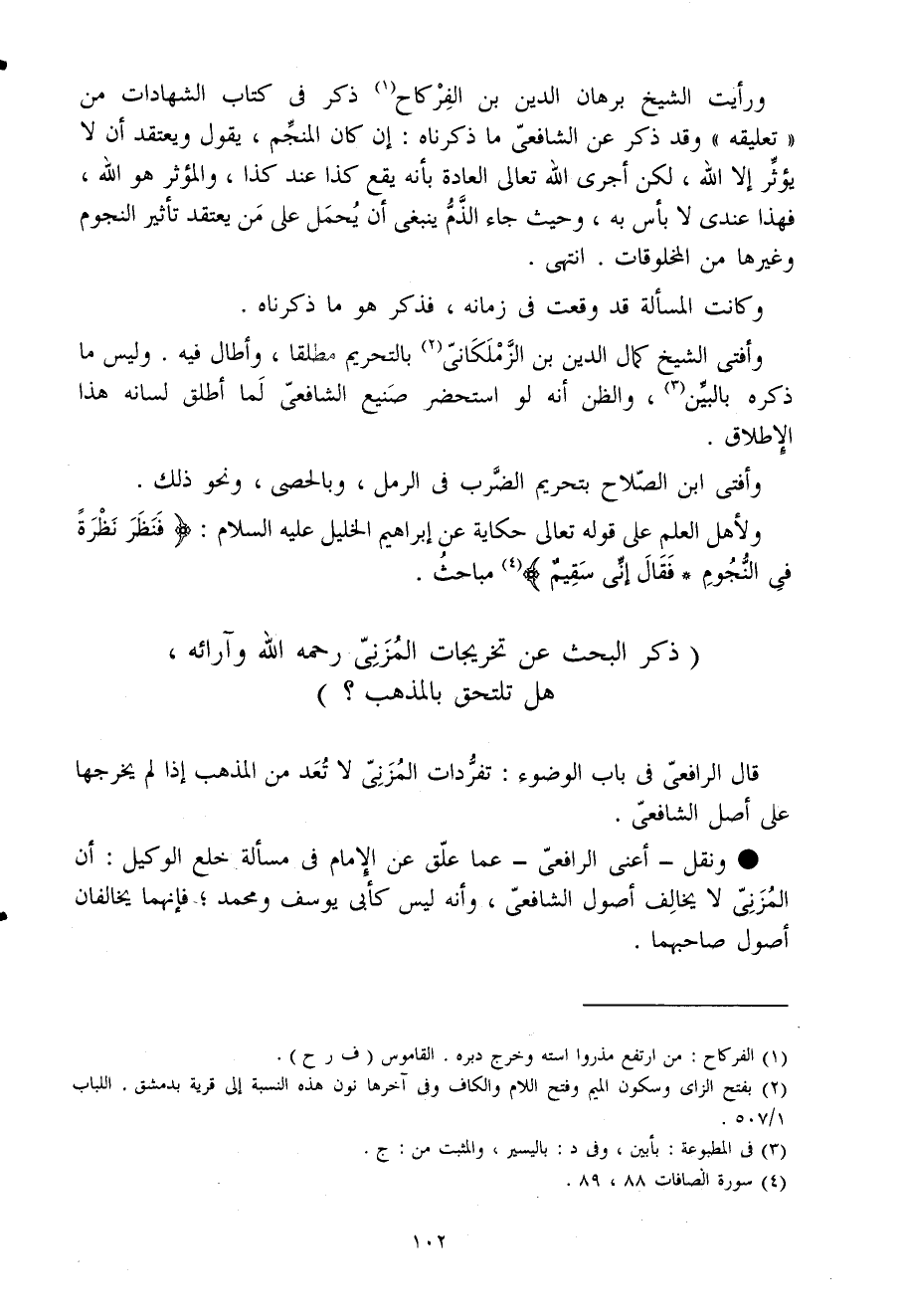 ذكر الْبَحْث عَن تخريجات المزنى رَحمَه الله وآرائه هَل تلتحق بِالْمذهبِ