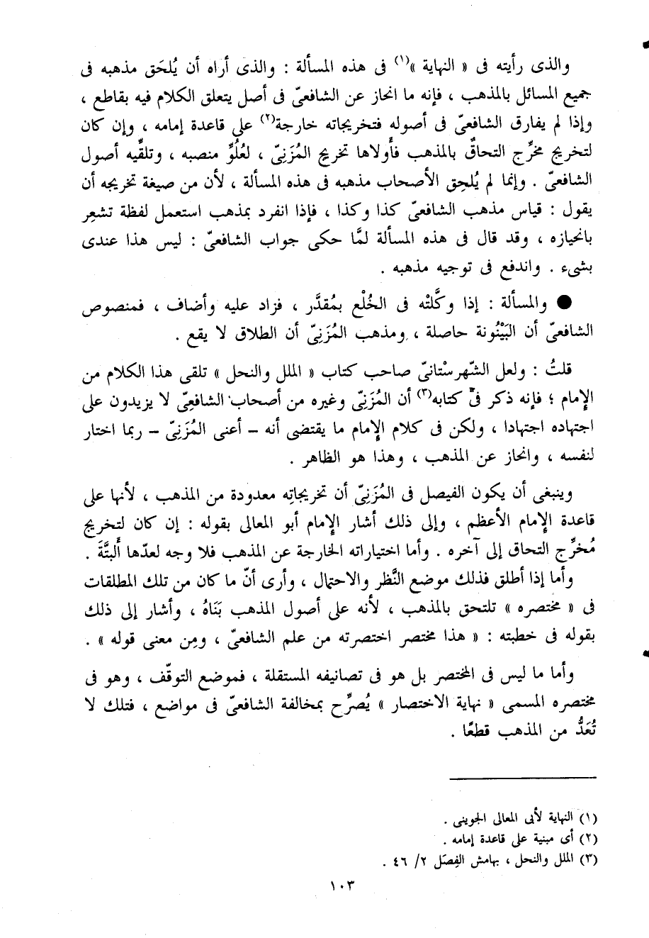 قلت وَلَعَلَّ الشهرستانى صَاحب كتاب الْملَل والنحل تلقى هَذَا الْكَلَام من الإِمَام فَإِنَّهُ ذكر فى كِتَابه أَن المزنى وَغَيره من أَصْحَاب الشافعى لَا يزِيدُونَ على اجْتِهَاده اجْتِهَادًا وَلَكِن فى كَلَام الإِمَام مَا يقتضى أَنه أعنى المزنى رُبمَا اخْتَار لنَفسِهِ وانحاز عَن الْمَذْهَب وَهَذَا هُوَ الظَّاهِر