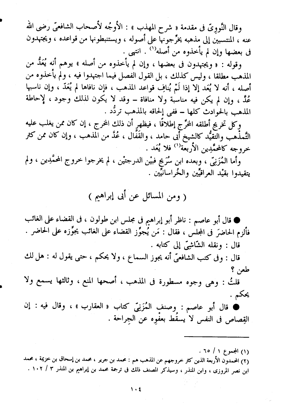 وَأما المزنى وَبعده ابْن سُرَيج فَبين الدرجتين لم يخرجُوا خُرُوج المحمدين وَلم يتقيدوا بِقَيْد الْعِرَاقِيّين والخراسانيين