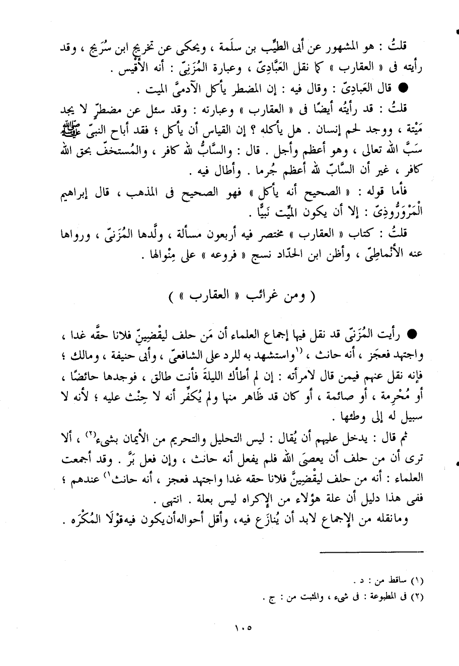 قلت كتاب العقارب مُخْتَصر فِيهِ أَرْبَعُونَ مَسْأَلَة وَلَدهَا المزنى وَرَوَاهَا عَنهُ الأنماطى وأظن ابْن الْحداد نسج فروعه على منوالها