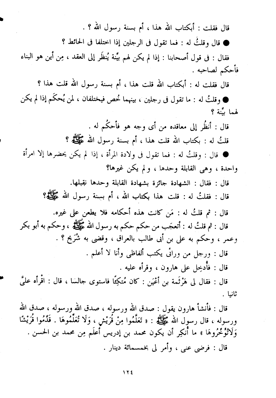قَالَ فَقلت لَهُ قلت هَذَا بِكِتَاب الله أم بِسنة رَسُول الله صلى الله عَلَيْهِ وَسلم قَالَ ثمَّ قلت لَهُ من كَانَت هَذِه أَحْكَامه فَلَا يطعن على غَيره