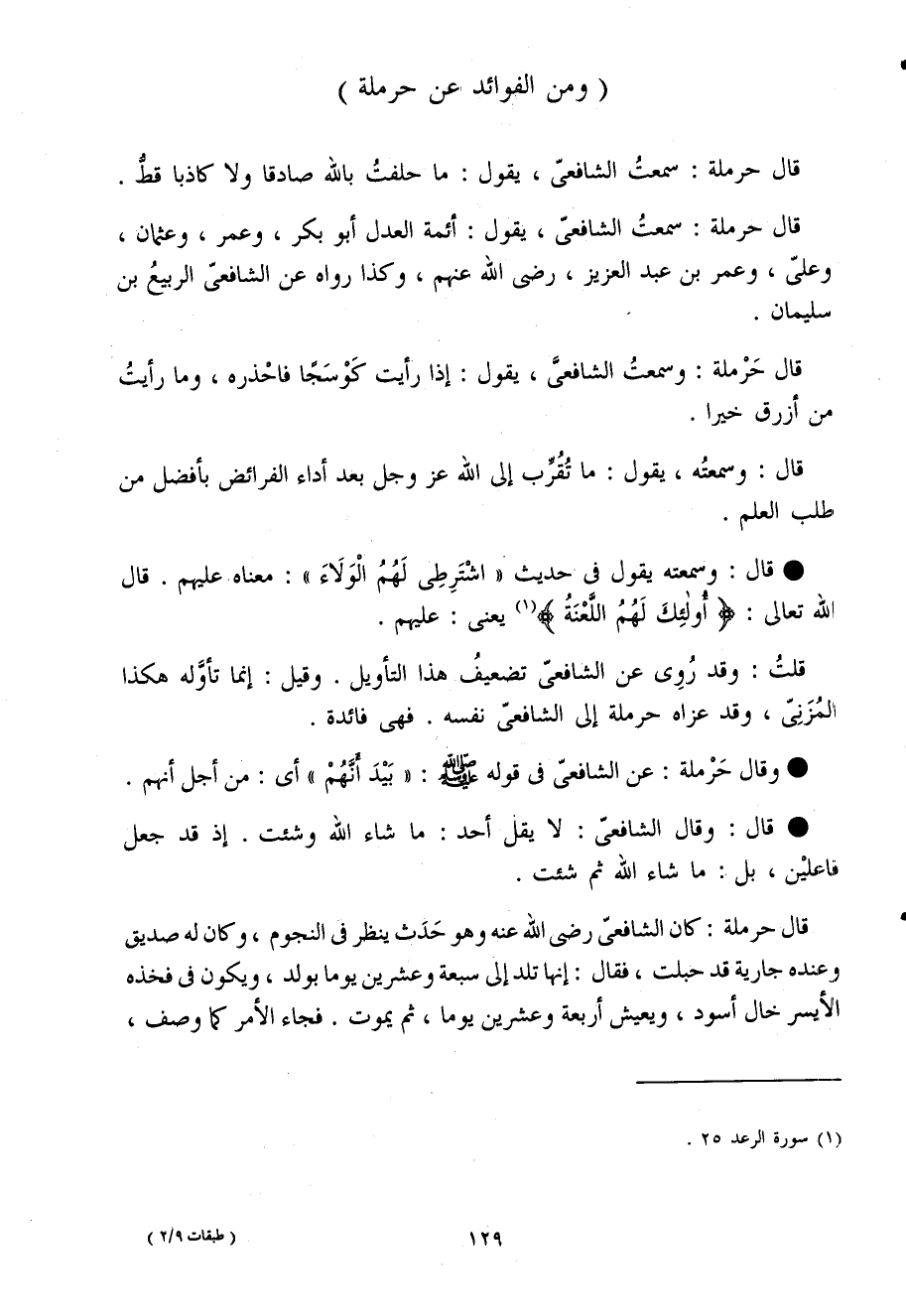 وَمن الْفَوَائِد عَن حَرْمَلَة