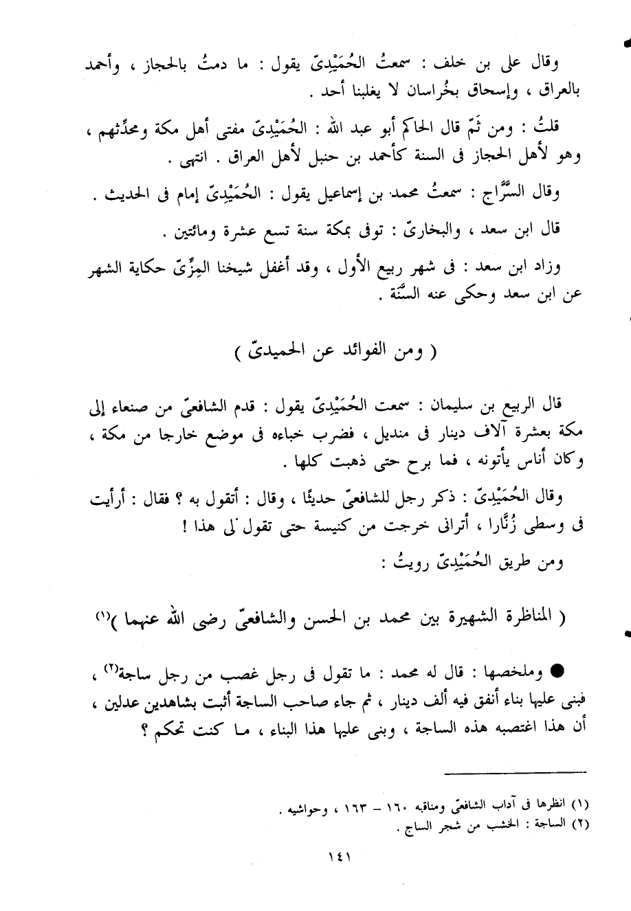 قلت وَمن ثمَّ قَالَ الْحَاكِم أَبُو عبد الله الحميدى مفتى أهل مَكَّة ومحدثهم وَهُوَ لأهل الْحجاز فى السّنة كأحمد بن حَنْبَل لأهل الْعرَاق انْتهى