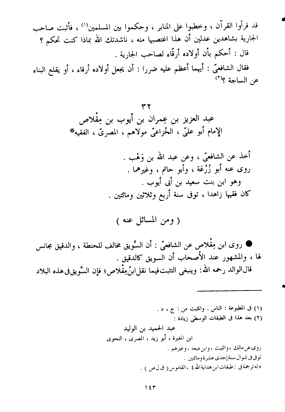 32 - عبد الْعَزِيز بن عمرَان بن أَيُّوب بن مِقْلَاص الإِمَام أَبُو على الخزاعى مَوْلَاهُم المصرى الْفَقِيه