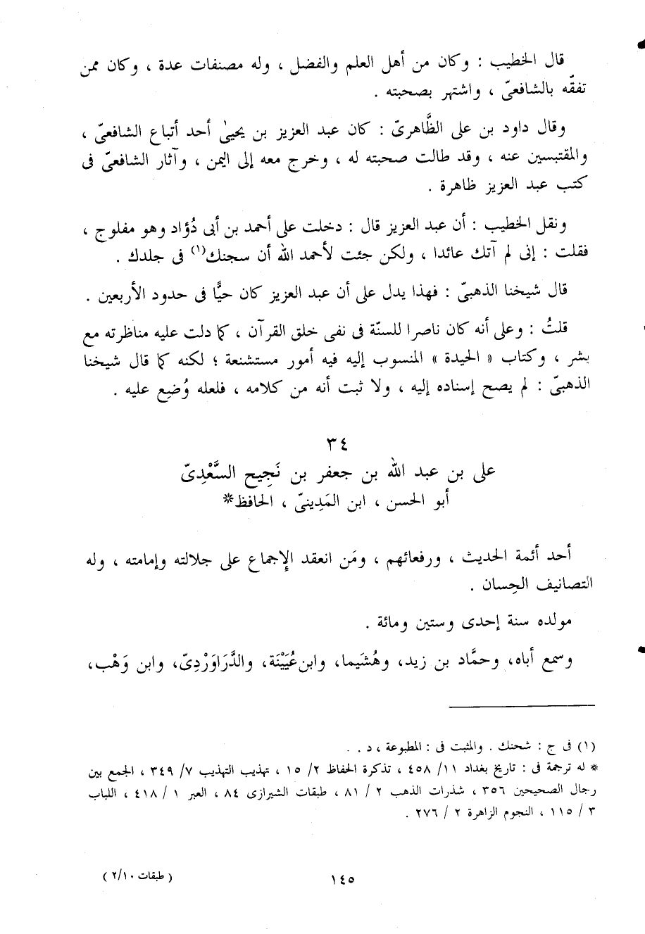 34 - على بن عبد الله بن جَعْفَر بن نجيح السعدى أَبُو الْحسن ابْن المدينى الْحَافِظ