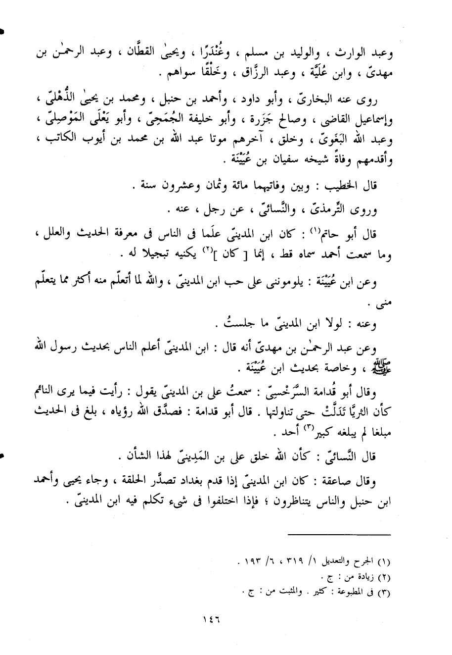 وَعَن ابْن عُيَيْنَة يلوموننى على حب ابْن المدينى وَالله لما أتعلم مِنْهُ أَكثر مِمَّا يتَعَلَّم منى
