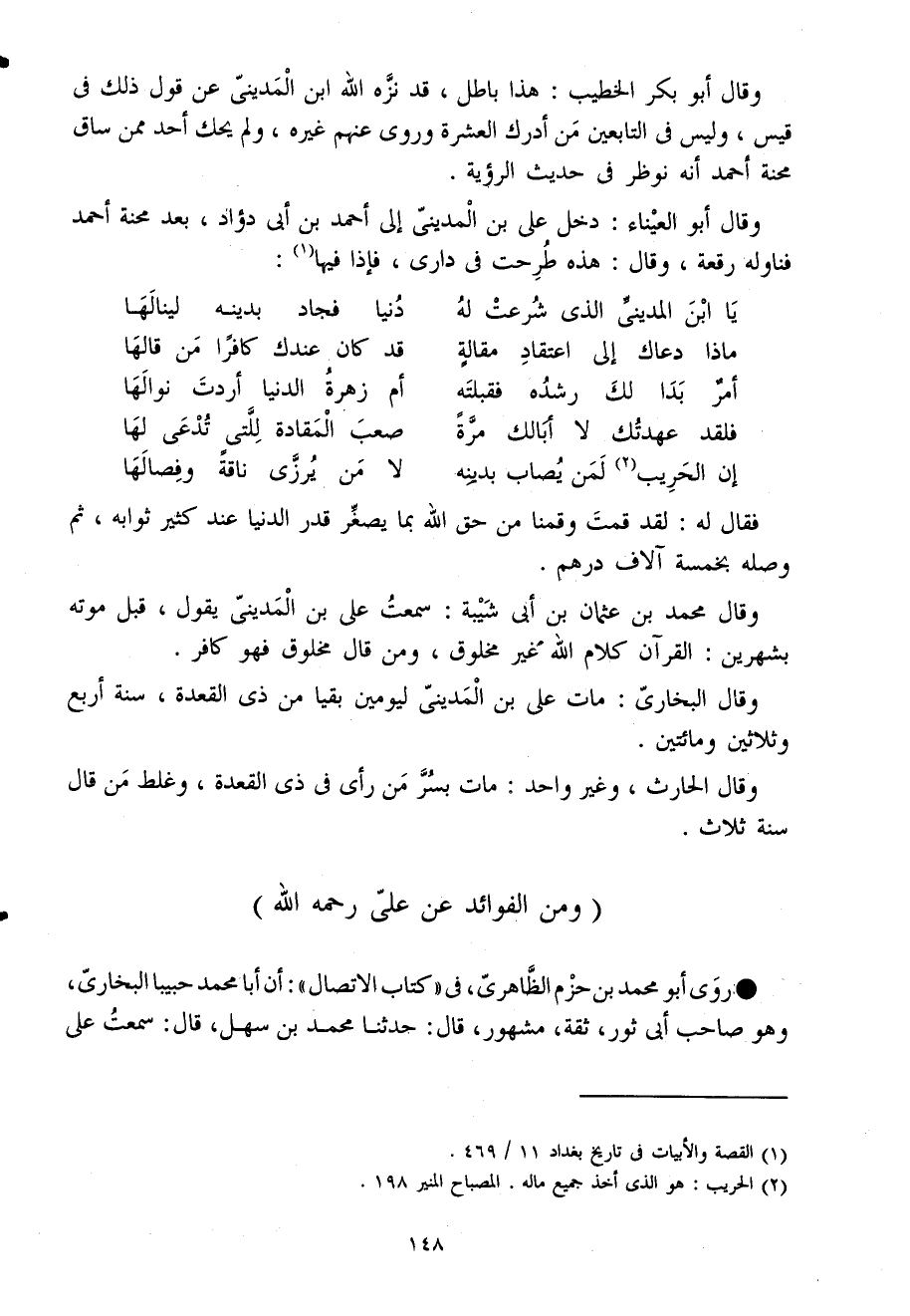 (يَا ابْن المدينى الذى شرعت لَهُ ... دنيا فجاد بِدِينِهِ لينالها)
