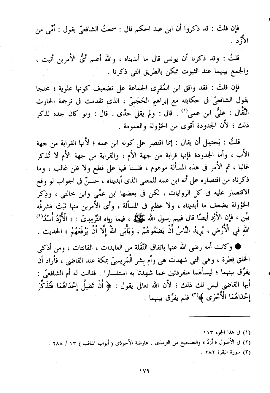 فَإِن قلت فقد وَافق ابْن المقرى الْجَمَاعَة على تَضْعِيف كَونهَا علوِيَّة محتجا بقول الشافعى فى حكايته مَعَ إِبْرَاهِيم الحجبى الذى تقدّمت فى تَرْجَمَة الْحَارِث النقال على ابْن عمى قَالَ وَلم يقل جدى قَالَ وَلَو كَانَ جده لذكر ذَلِك لِأَن الجدودة أقوى من الخؤولة والعمومة