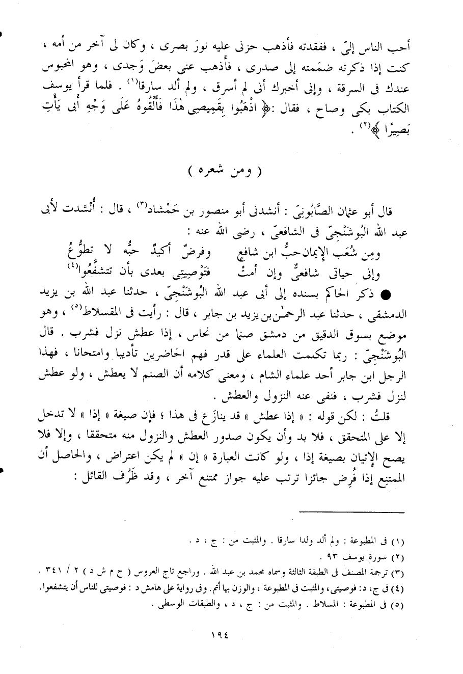 قَالَ أَبُو عُثْمَان الصابونى أنشدنى أَبُو مَنْصُور بن حمشاد قَالَ أنشدت لأبى عبد الله البوشنجى فى الشافعى رضى الله عَنهُ