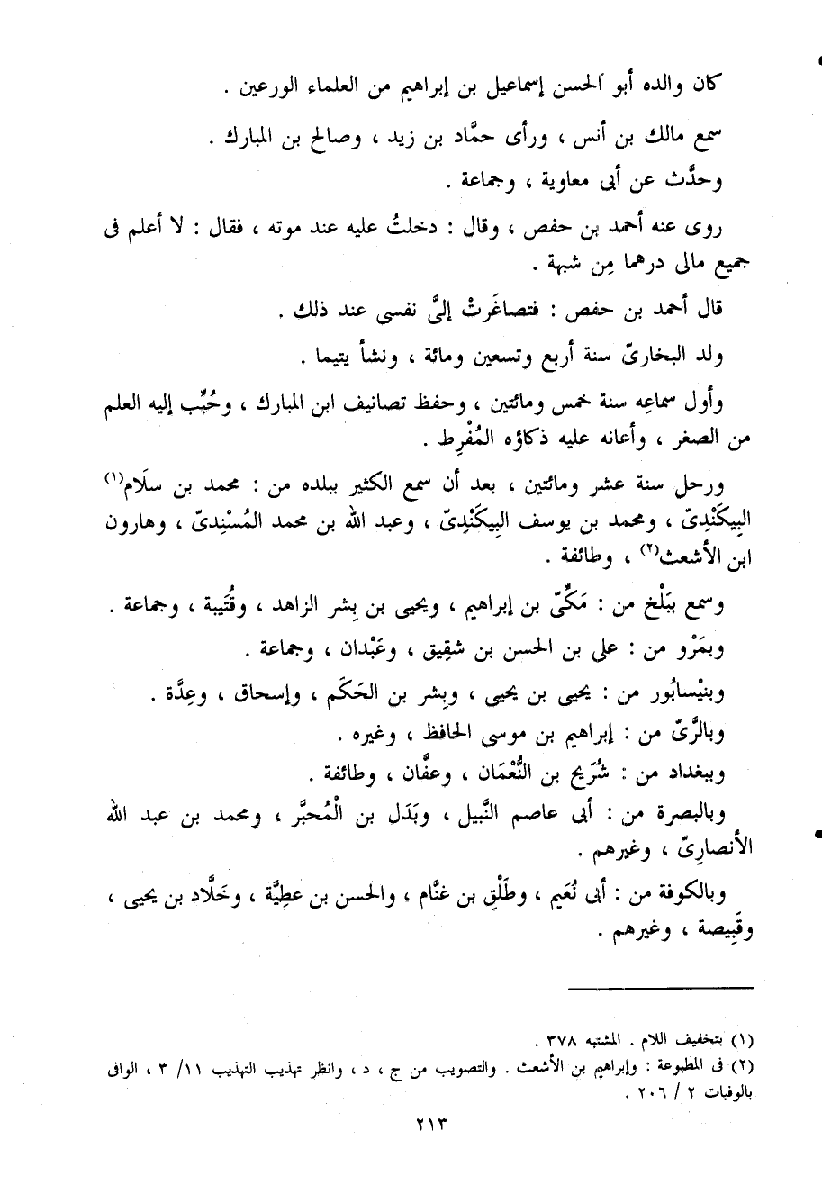 ورحل سنة عشر وَمِائَتَيْنِ بعد أَن سمع الْكثير بِبَلَدِهِ من مُحَمَّد بن سَلام البيكندى وَمُحَمّد بن يُوسُف البيكندى وَعبد الله بن مُحَمَّد المسندى وَهَارُون ابْن الْأَشْعَث وَطَائِفَة