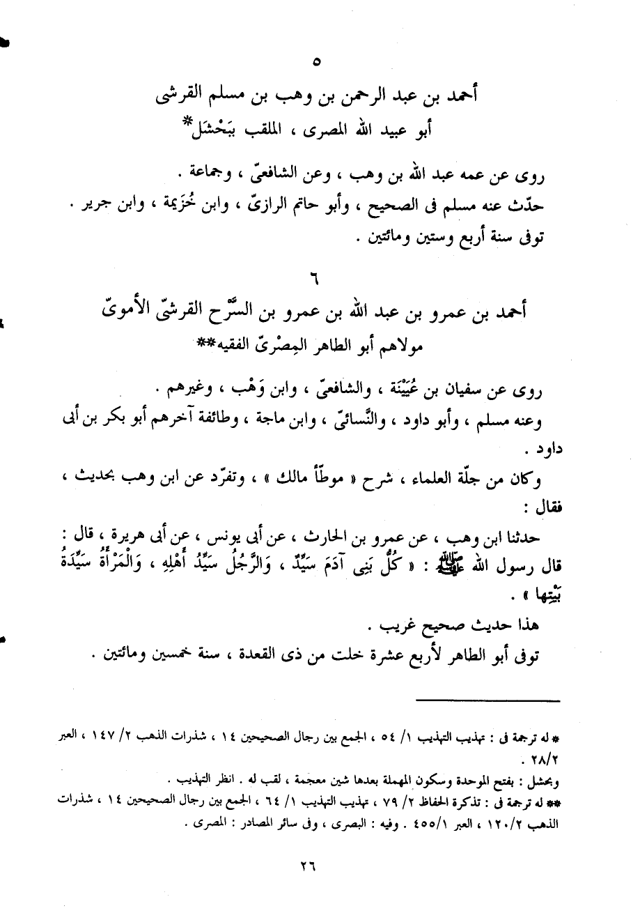 6 - أَحْمَد بْن عَمْرو بْن عَبْد اللَّه بْن عَمْرو بْن السَّرْح الْقرشِي الْأمَوِي مَوْلَاهُم أَبُو الطَّاهِر المصرى الْفَقِيه