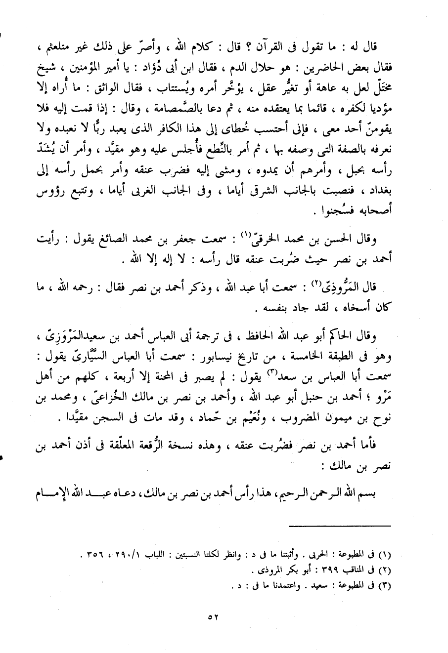 فَأَما أَحْمَد بْن نصر فَضربت عُنُقه وَهَذِه نُسْخَة الرقعة الْمُعَلقَة فِي أذن أَحْمَد بْن نصر بْن مَالك