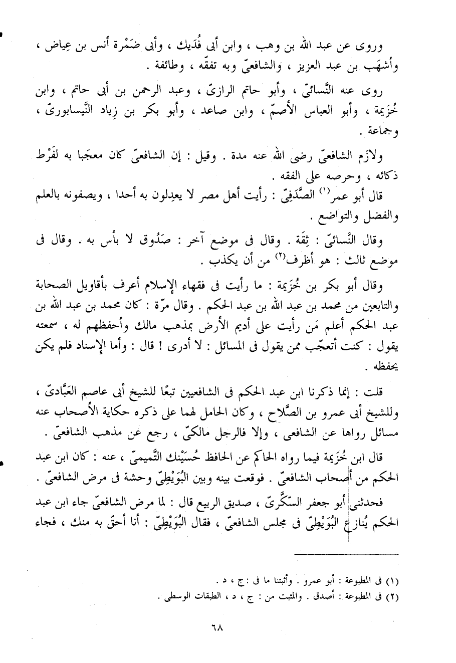 قلت إِنَّمَا ذكرنَا ابْن عَبْد الحكم فِي الشافعيين تبعا للشَّيْخ أَبِي عَاصِم الْعَبَّادِيّ وللشيخ أَبِي عَمْرو بْن الصّلاح وَكَانَ الْحَامِل لَهما عَلَى ذكره حِكَايَة الْأَصْحَاب عَنهُ مسَائِل رَوَاهَا عَن الشَّافِعِي وَإِلَّا فالرجل مالكي رَجَعَ عَن مَذْهَب الشَّافِعِي