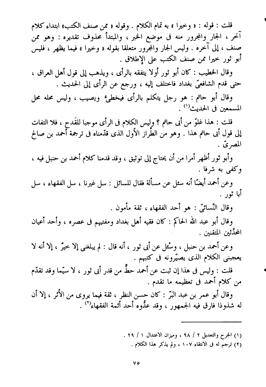 وَأَبُو ثَوْر أظهر أمرا من أَن يحْتَاج إِلَى تَوْثِيق وَقد قدمنَا كَلَام أَحْمَد بْن حَنْبَل فِيهِ وَكفى بِهِ شرفا
