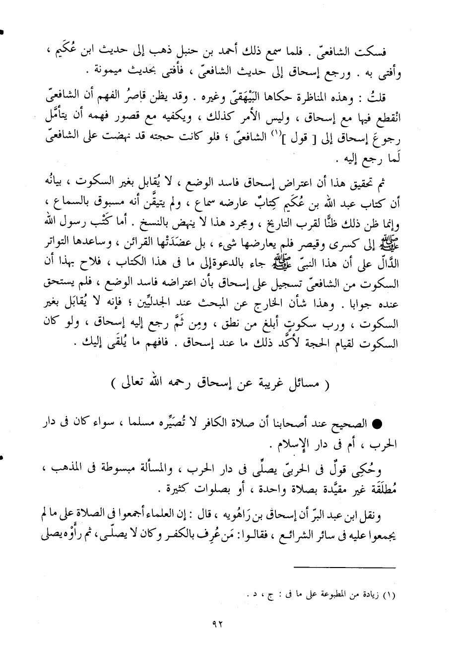 مسَائِل غَرِيبَة عَن إِسْحَاق رَحمَه اللَّه تَعَالَى