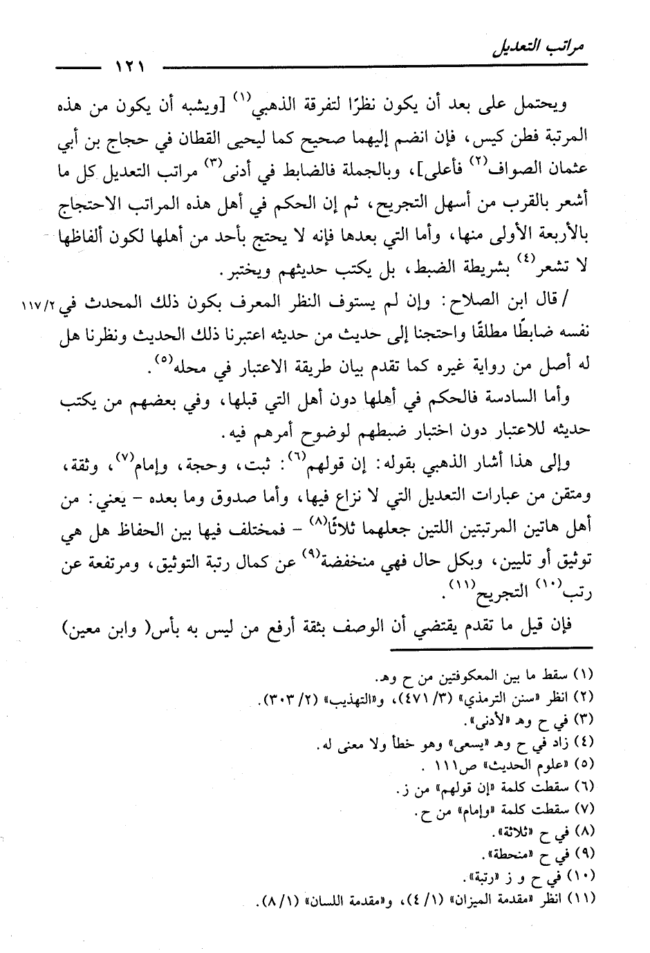 وَإِلَى هَذَا أَشَارَ الذَّهَبِيُّ بِقَوْلِهِ: إِنَّ قَوْلَهُمْ: ثَبْتٌ وَحُجَّةٌ وَإِمَامٌ وَثِقَةٌ وَمُتْقِنٌ، مِنْ عِبَارَاتِ التَّعْدِيلِ الَّتِي لَا نِزَاعَ فِيهَا، وَأَمَّا صَدُوقٌ وَمَا بَعْدَهُ، يَعْنِي مِنْ أَهْلِ هَاتَيْنِ الْمَرْتَبَتَيْنِ اللَّتَيْنِ جَعَلَهُمَا ثَلَاثًا، فَمُخْتَلَفٌ فِيهَا بَيْنَ الْحُفَّاظِ هَلْ هِيَ تَوْثِيقٌ أَوْ تَلْيِينٌ.