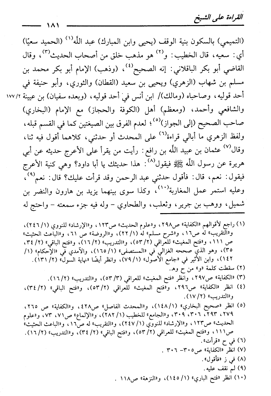 (التَّمِيمِيْ) بِالسُّكُونِ بِنِيَّةِ الْوَقْفِ (يَحْيَى وَابْنُ الْمُبَارَكِ) عَبْدُ اللَّهِ (الْحَمِيدُ سَعْيًا) أَيْ: سَعْيُهُ. قَالَ الْخَطِيبُ: وَهُوَ مَذْهَبُ خَلْقٍ مِنْ أَصْحَابِ الْحَدِيثِ. وَقَالَ الْقَاضِي أَبُو بَكْرٍ الْبَاقِلَانِيُّ: إِنَّهُ الصَّحِيحُ.
