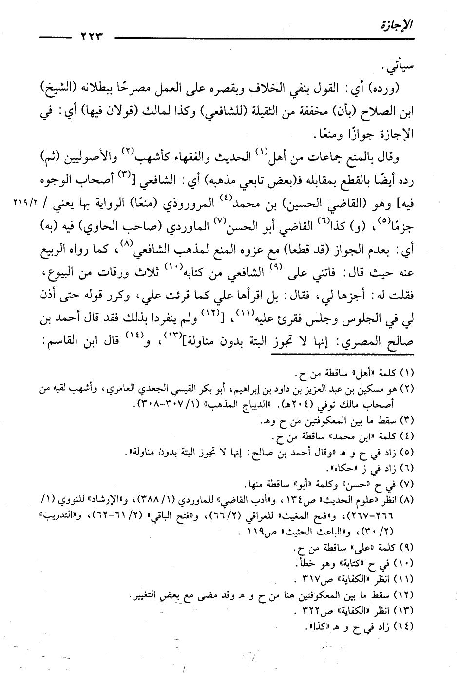 وَقَالَ بِالْمَنْعِ جَمَاعَاتٌ مِنْ أَهْلِ الْحَدِيثِ وَالْفُقَهَاءِ كَأَشْهَبَ وَالْأُصُولِيِّينَ (ثُمَّ) رَدَّهُ أَيْضًا بِالْقَطْعِ بِمُقَابِلِهِ فَ (بَعْضُ تَابِعِي مَذْهَبِهِ) أَيِ: الشَّافِعِّيُّ، [أَصْحَابُ الْوُجُوهِ فِيهِ] ، وَهُوَ (الْقَاضِي الْحُسَيْنُ) بْنُ مُحَمَّدٍ الْمَرْوَرُوذِيُّ (مَنَعَا) الرِّوَايَةَ بِهَا ; يَعْنِي جَزْمًا.