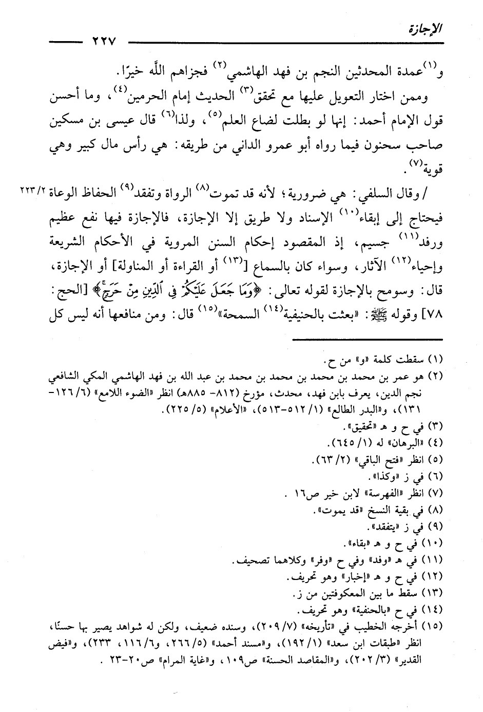 عُمْدَةُ الْمُحَدِّثِينَ النَّجْمُ بْنُ فَهْدٍ الْهَاشِمِيُّ، فَجَزَاهُمُ اللَّهُ خَيْرًا.