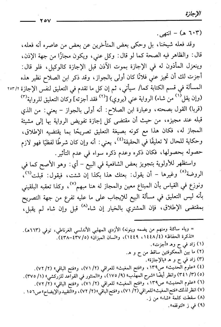 وَقَدْ فَعَلَهُ شَيْخُنَا، بَلْ وَحَكَى بَعْضُ الْمُتَأَخِّرِينَ عَنْ بَعْضِ مَنْ عَاصَرَهُ أَنَّهُ فَعَلَهُ، قَالَ: وَالظَّاهِرُ فِيهِ الصِّحَّةُ كَمَا لَوْ قَالَ: وَكِّلْ عَنِّي. وَيَكُونُ مُجَازًا مِنْ جِهَةِ الْإِذْنِ، وَيَنْعَزِلُ الْمَأْذُونُ لَهُ فِي الْإِجَازَةِ بِمَوْتِ الْآذِنِ قَبْلَ الْإِجَازَةِ كَالْوَكِيلِ، فَلَوْ قَالَ: أَجَزْتُ لَكَ أَنْ تُجِيزَ عَنِّي فُلَانًا، كَانَ أَوْلَى بِالْجَوَازِ، وَقَدْ ذَكَرَ ابْنُ الصَّلَاحِ نَظِيرَ هَذِهِ الْمَسْأَلَةِ فِي قِسْمِ الْكِتَابَةِ كَمَا سَيَأْتِي، ثُمَّ إِنَّ كُلَّ مَا تَقَدَّمَ فِي التَّعْلِيقِ لِنَفْسِ الْإِجَازَةِ.
