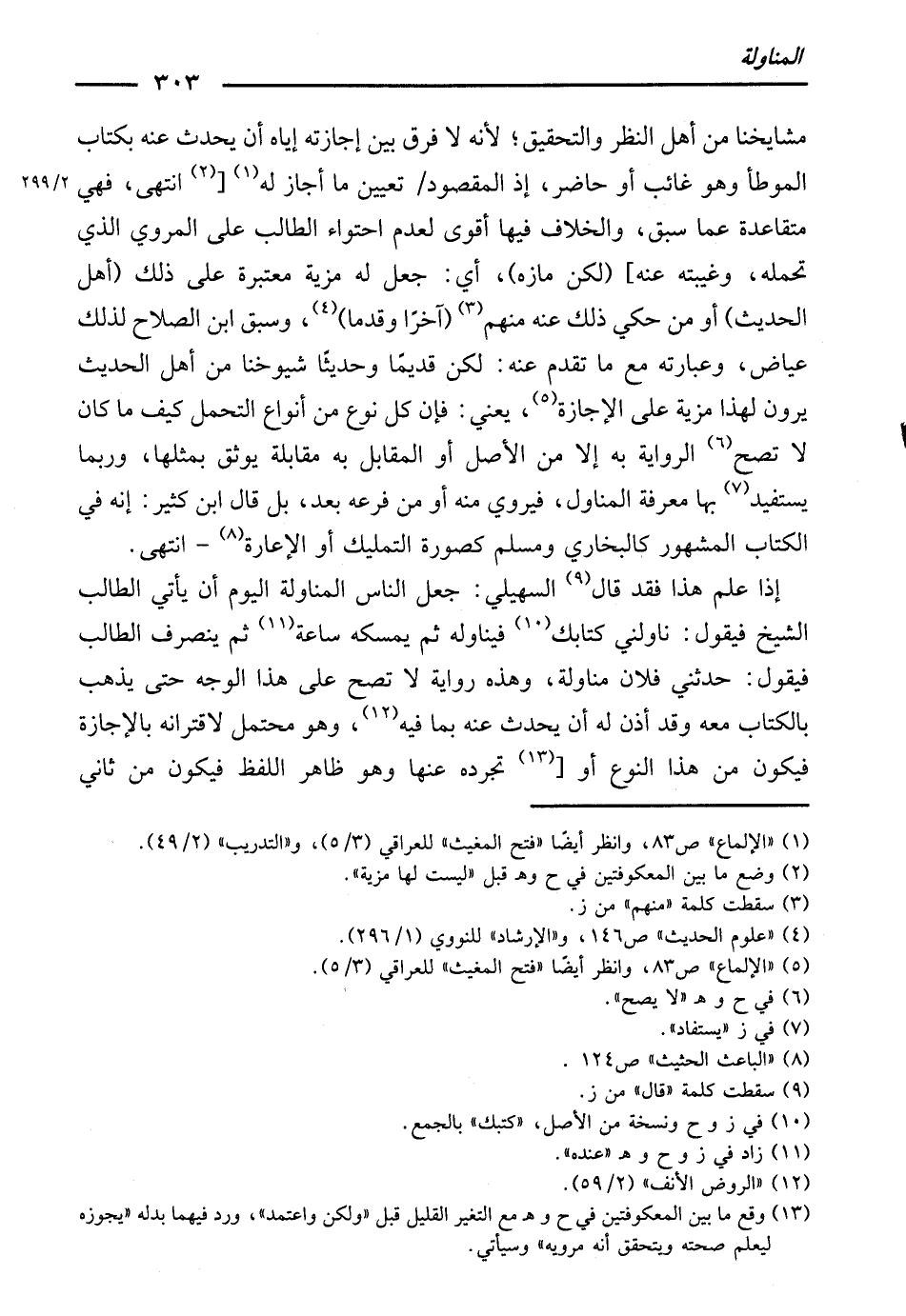 إِذَا عُلِمَ هَذَا فَقَدْ قَالَ السُّهَيْلِيُّ: جَعَلَ النَّاسُ الْمُنَاوَلَةَ الْيَوْمَ أَنْ يَأْتِيَ الطَّالِبُ الشَّيْخَ فَيَقُولَ: نَاوِلْنِي كِتَابَكَ، فَيُنَاوِلُهُ، ثُمَّ يُمْسِكُهُ سَاعَةً، ثُمَّ يَنْصَرِفُ الطَّالِبُ فَيَقُولُ: حَدَّثَنِي فُلَانٌ مُنَاوَلَةً، وَهَذِهِ رِوَايَةٌ لَا تَصِحُّ عَلَى هَذَا الْوَجْهِ حَتَّى يَذْهَبَ بِالْكِتَابِ مَعَهُ، وَقَدْ أَذِنَ لَهُ أَنْ يُحَدِّثَ عَنْهُ بِمَا فِيهِ، وَهُوَ مُحْتَمِلٌ لِاقْتِرَانِهِ بِالْإِجَازَةِ، فَيَكُونُ مِنْ هَذَا النَّوْعِ، أَوْ [تَجَرُّدِهِ عَنْهَا، وَهُوَ ظَاهِرُ اللَّفْظِ، فَيَكُونُ مِنْ ثَانِي