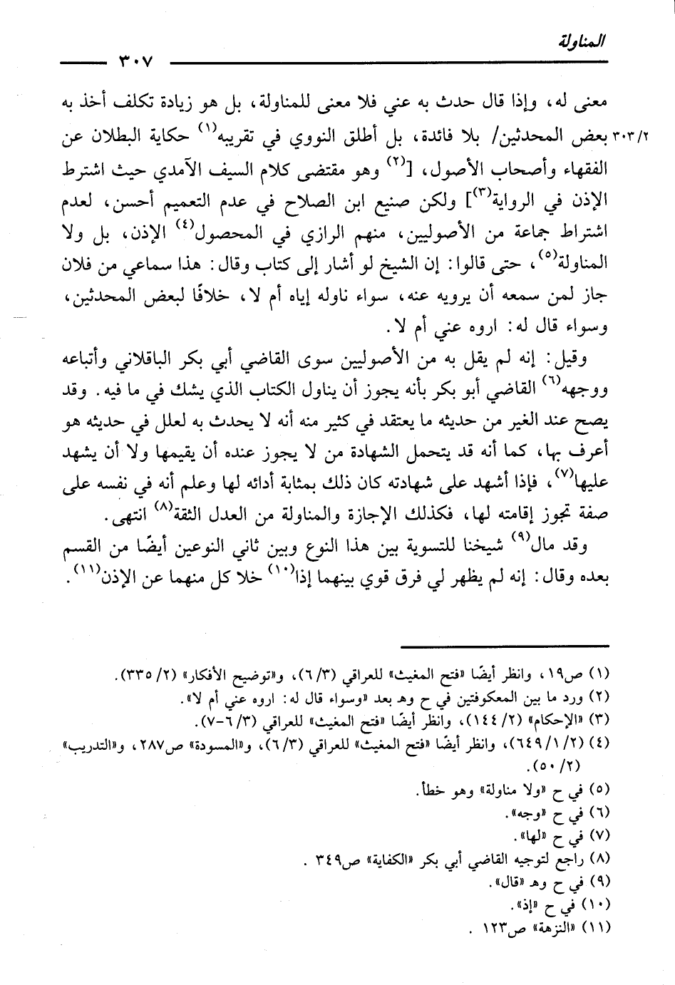 وَقِيلَ: إِنَّهُ لَمْ يَقُلْ بِهِ مِنَ الْأُصُولِيِّينَ سِوَى الْقَاضِي أَبِي بَكْرٍ الْبَاقِلَّانِيِّ وَأَتْبَاعِهِ، وَوَجَّهَهُ الْقَاضِي أَبُو بَكْرٍ بِأَنَّهُ يَجُوزُ أَنْ يُنَاوِلَ الْكِتَابَ الَّذِي يَشُكُّ فِيمَا فِيهِ، وَقَدْ يَصِحُّ عِنْدَ الْغَيْرِ مِنْ حَدِيثِهِ مَا يُعْتَقَدُ فِي كَثِيرٍ مِنْهُ أَنَّهُ لَا يُحَدِّثُ بِهِ لِعِلَلٍ فِي حَدِيثِهِ هُوَ أَعْرَفُ بِهَا، كَمَا أَنَّهُ قَدْ يَتَحَمَّلُ الشَّهَادَةَ مَنْ لَا يَجُوزُ عِنْدَهُ أَنْ يُقِيمَهَا، وَلَا أَنْ يَشْهَدَ عَلَيْهَا، فَإِذَا أَشْهَدَ عَلَى شَهَادَتِهِ كَانَ ذَلِكَ بِمَثَابَةِ أَدَائِهِ لَهَا، وَعَلِمَ أَنَّهُ فِي نَفْسِهِ عَلَى صِفَةٍ تَجُوزُ إِقَامَتُهُ لَهَا، فَكَذَلِكَ الْإِجَازَةُ وَالْمُنَاوَلَةُ مِنَ الْعَدْلِ الثِّقَةِ - انْتَهَى.