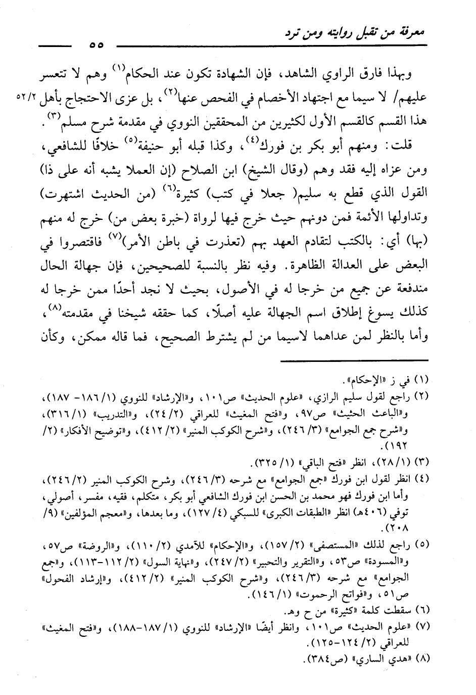 قُلْتُ: وَمِنْهُمْ أَبُو بَكْرِ بْنُ فُورَكٍ، وَكَذَا قَبْلَهُ أَبُو حَنِيفَةَ خِلَافًا لِلشَّافِعِيِّ، وَمَنْ عَزَاهُ إِلَيْهِ فَقَدْ وَهِمَ. (وَقَالَ الشَّيْخُ) ابْنُ الصَّلَاحِ (إِنَّ الْعَمَلَا يُشْبِهُ أَنَّهُ عَلَى ذَا) الْقَوْلِ الَّذِي قَطَعَ بِهِ سُلَيْمٌ (جُعِلَا فِي كُتُبٍ) كَثِيرَةٍ (مِنَ الْحَدِيثِ اشْتَهَرَتْ) ، وَتَدَاوَلَهَا الْأَئِمَّةُ فَمَنْ دُونَهُمْ، حَيْثُ خُرِّجَ فِيهَا لِرُوَاةٍ (خِبْرَةُ بَعْضِ مَنْ) خَرَّجَ لَهُ مِنْهُمْ (بِهَا) أَيْ: بِالْكُتُبِ ; لِتَقَادُمِ الْعَهْدِ بِهِمْ.