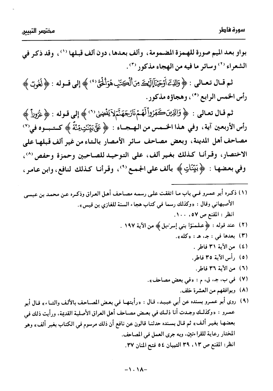 (¬1) ذكره أبو عمرو في باب ما اتفقت على رسمه مصاحف أهل العراق وذكره عن محمد بن عيسى الأصبهاني وقال: «وكذلك رسما في كتاب هجاء السنة للغازي بن قيس».
