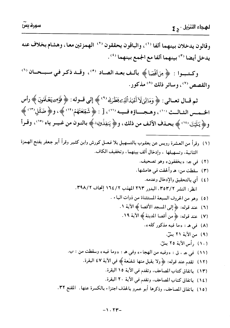(¬15) باتفاق المصاحف، وذكرها أبو عمرو بالحذف اجتزاء بالكسرة عنها. المقنع 32.