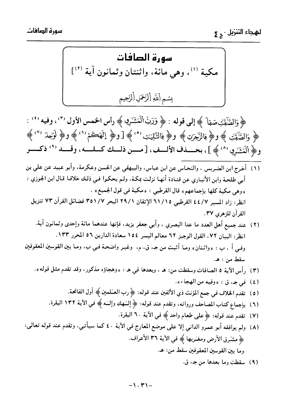 سورة الصافات مكية (¬1)، وهي مائة، واثنتان وثمانون آية (¬2)