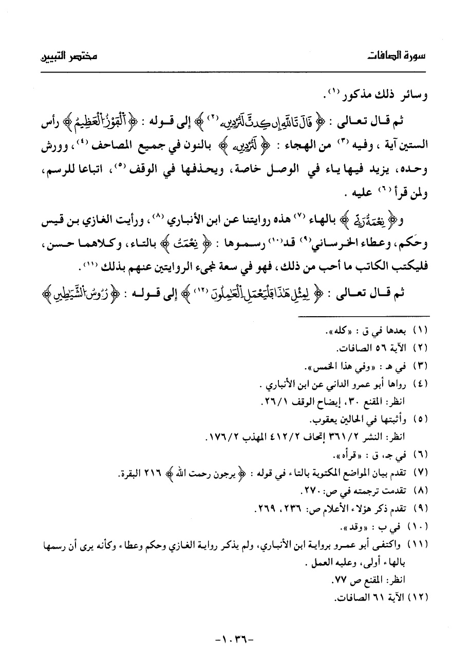 (¬11) واكتفى أبو عمرو برواية ابن الأنباري، ولم يذكر رواية الغازي وحكم وعطاء وكأنه يرى أن رسمها بالهاء أولى، وعليه العمل.