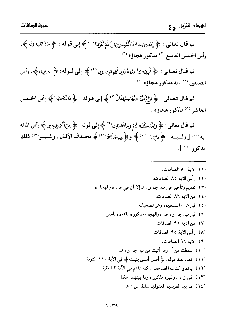 ثم قال تعالى: والله خلقكم وما تعملون (¬9) إلى قوله: من الصّلحين رأس المائة آية (¬10) [وفيه: بنينا (¬11) وفجعلنهم (¬12) بحذف الألف، وغير (¬13) ذلك مذكور (¬14)].