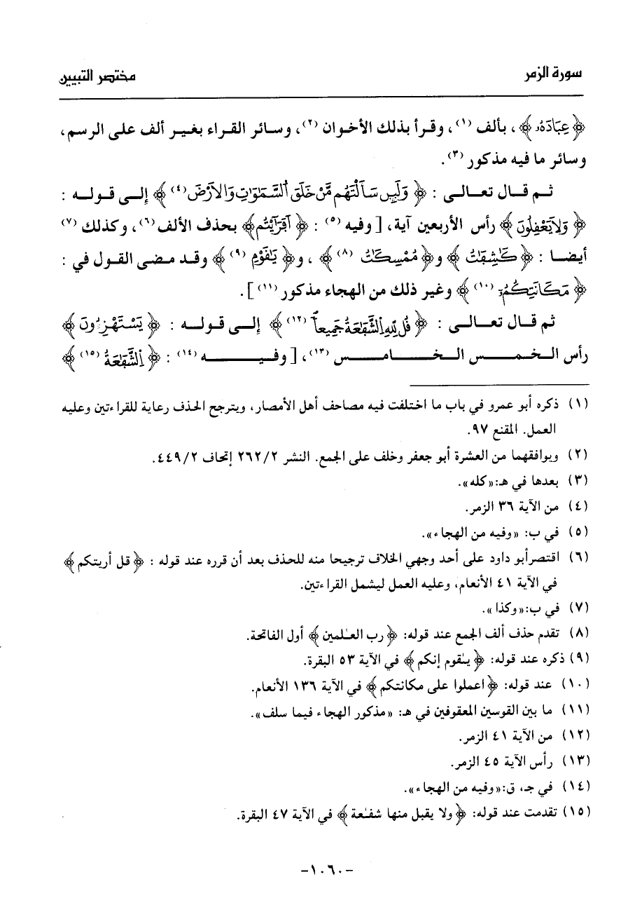 (¬6) اقتصر أبو داود على أحد وجهي الخلاف ترجيحا منه للحذف بعد أن قرره عند قوله: قل أريتكم في الآية 41 الأنعام، وعليه العمل ليشمل القراءتين.