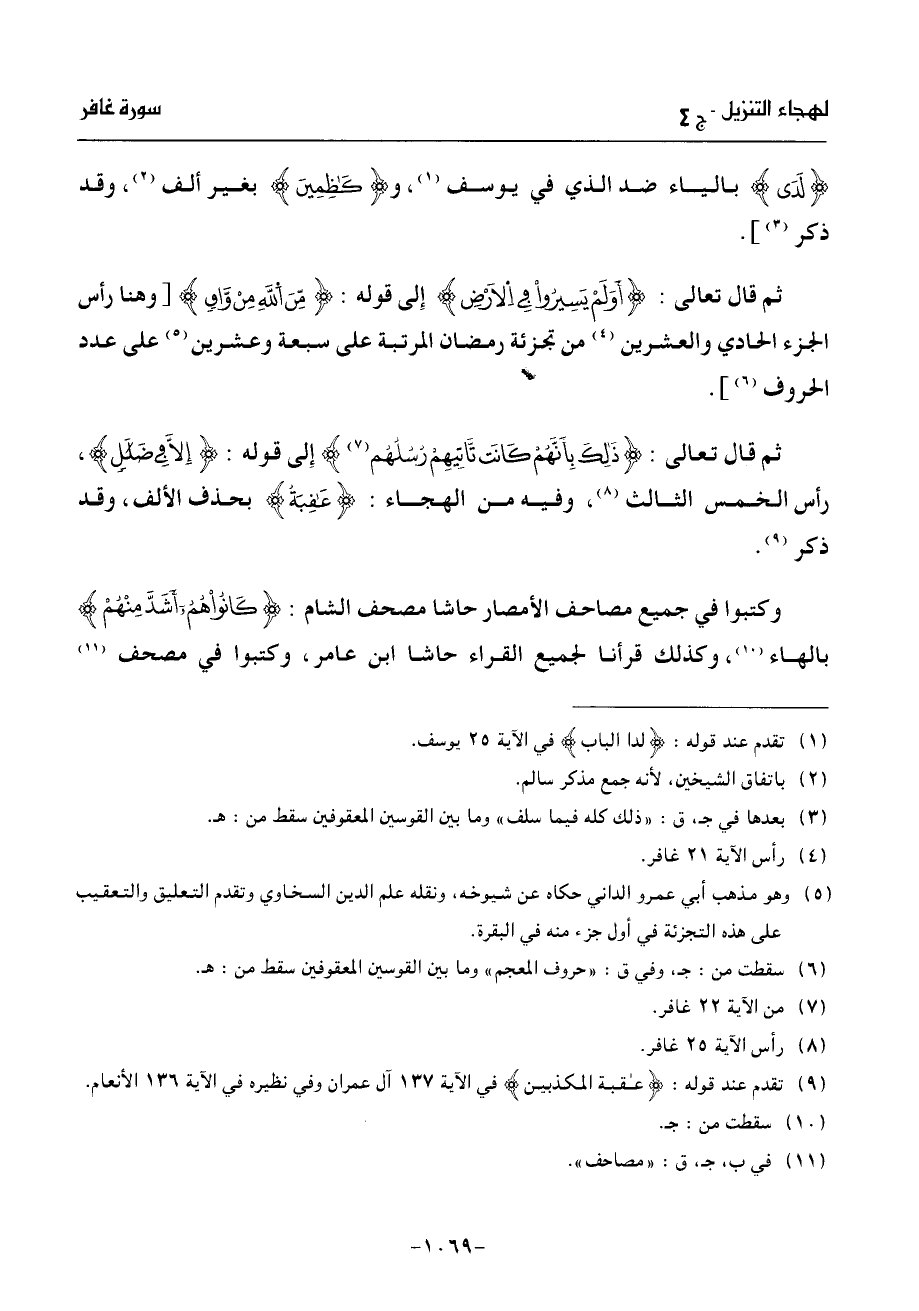 ثم قال تعالى: ذلك بأنّهم كانت تّاتيهم رسلهم (¬7) إلى قوله: الّا فى ضلل، رأس الخمس الثالث (¬8)، وفيه من الهجاء: عقبة بحذف الألف، وقد ذكر (¬9).