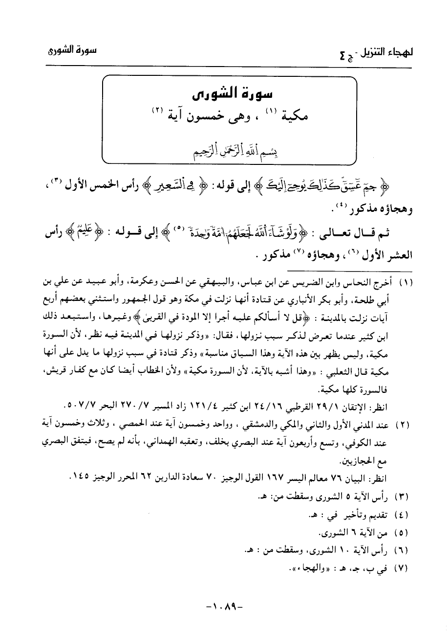 بسم الله الرّحمن الرّحيم حم عسق كذلك يوحى إليك إلى قوله: فى السّعير رأس الخمس الأول (¬3)، وهجاؤه مذكور (¬4).