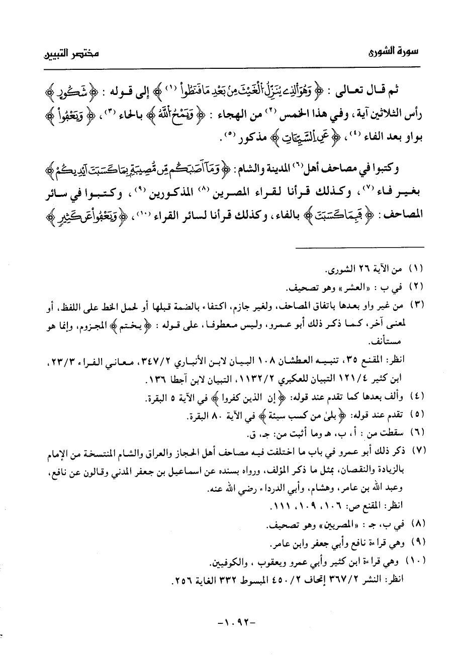 ثم قال تعالى: وهو الذى ينزّل الغيث من بعد ما قنطوا (¬1) إلى قوله: شكور رأس الثلاثين آية، وفي هذا الخمس (¬2) من الهجاء: ويمح الله بالحاء (¬3)، ويعفوا بواو بعد الفاء (¬4)، عن السّيّئات مذكور (¬5).