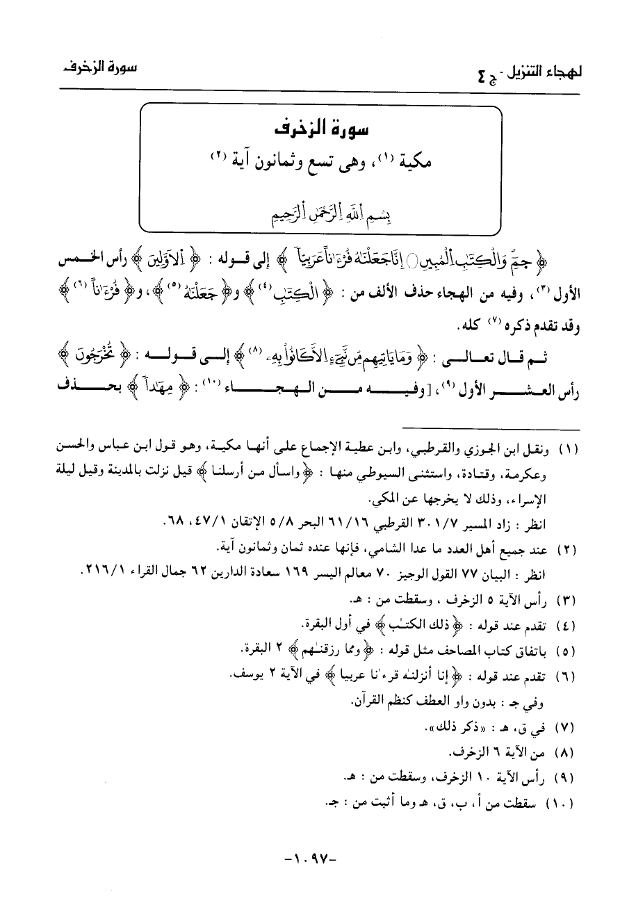سورة الزخرف مكية (¬1)، وهى تسع وثمانون آية (¬2)